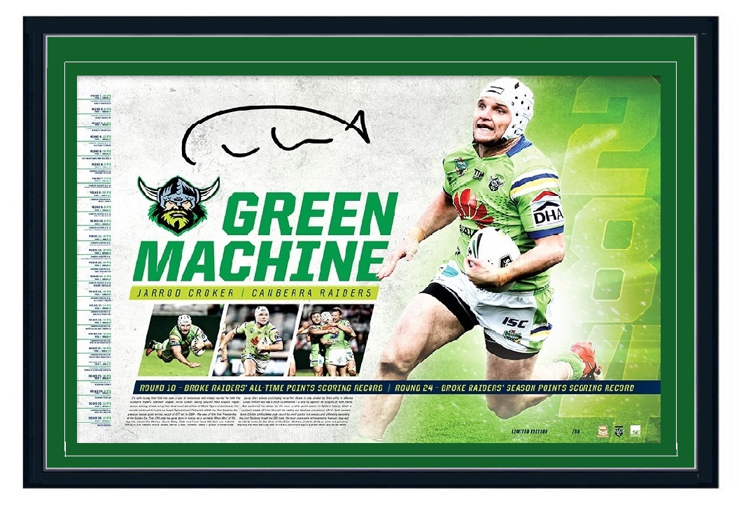JARROD CROKER Signed Raiders Green Machine Framed